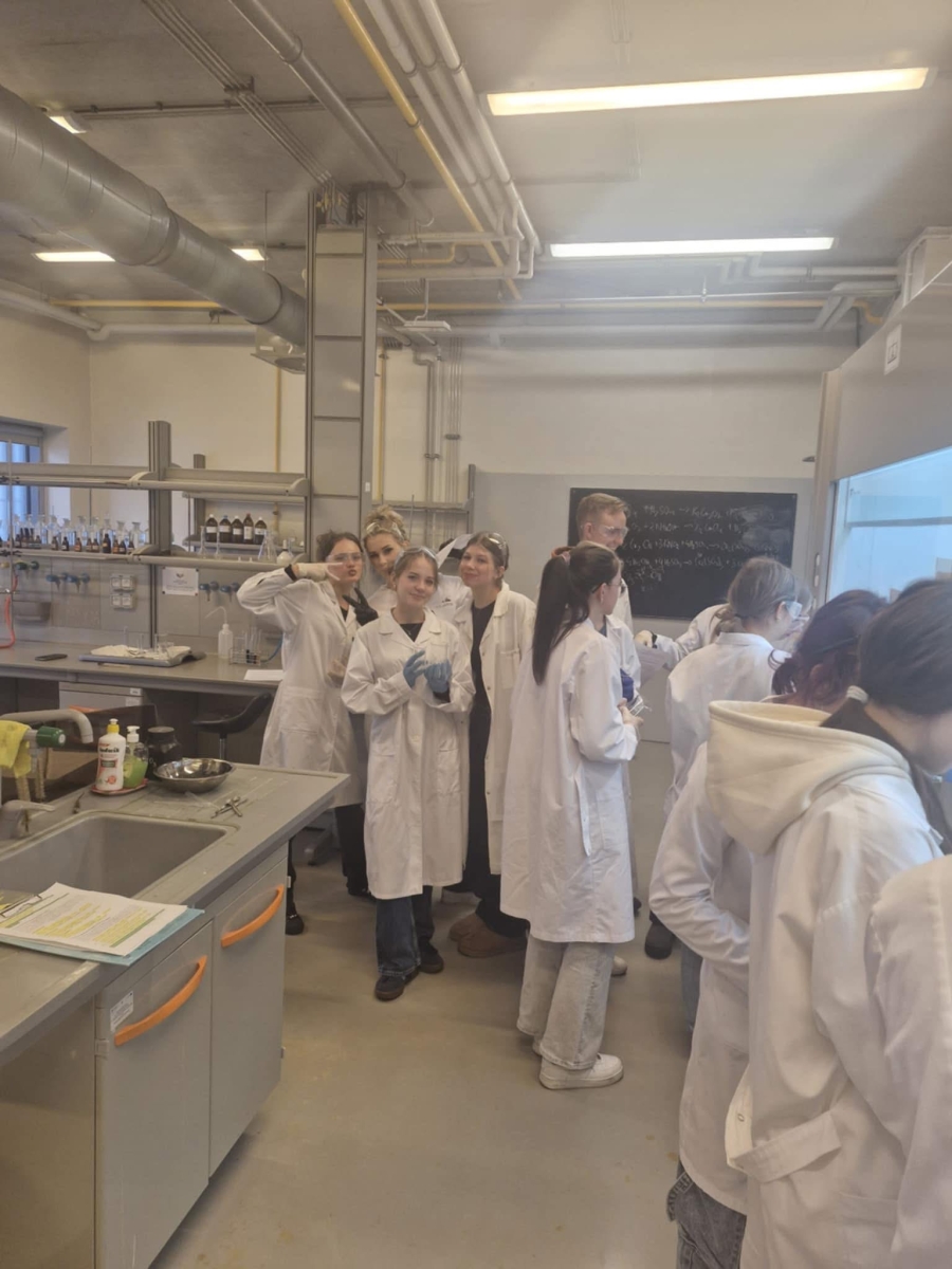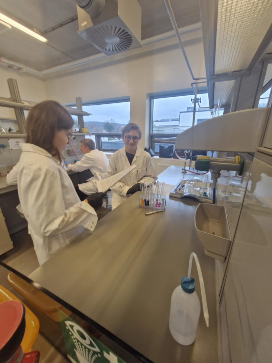 Dnia 8 grudnia 2025 uczniowie klasy 2B oraz 4 uczniów klasy 3B uczestniczyli w zajęciach laboratoryjnych na Wydziale Chemii Uniwersytetu Gdańskiego. Uczniowie zmierzyli się z barwnymi reakcjami redoks dotyczącymi związków manganu i chromu.