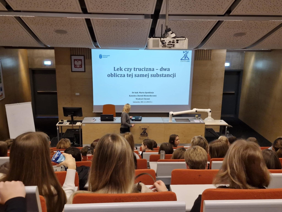 Uczniowie mieli również możliwość wysłuchania wykładu popularnonaukowego na temat: Lek czy trucizna - dwa oblicza tej samej substancji. W wolnej chwili odwiedziliśmy Wydział Biologii UG. Oby więcej takich wyjazdów.