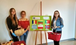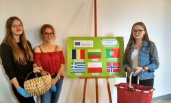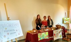 Klasa I B przygotowała piękne jesienne stoisko, które przyciągało wielu zainteresowanych. Na korytarzach szkoły można było poczuć tego dnia jesienny powiew - wokół mnóstwo kasztanów, wrzosów, jesiennych liści i smacznych jabłek.